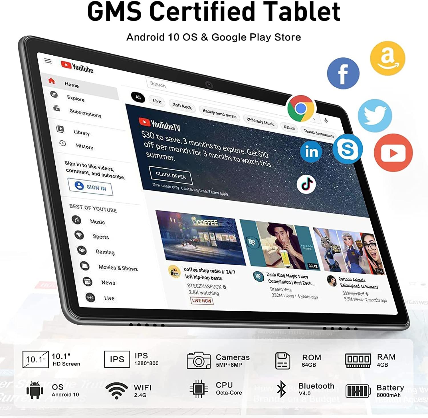 • ENJOY YOUR LIFE : M7 Android 10 tablet is 1.08 pounds Light weight and 0.9cm thin, Light and comfortable handle (9 mm thin), It can appear in your backpack, bedside, living room, coffee and shopping, Android 10 tablet can also be carried on the subway, bus, travel, etc. You can take it anywhere whatever work or traveling. It is a perfect tablet. You can use GOOGLE GPS, which is a good navigator.