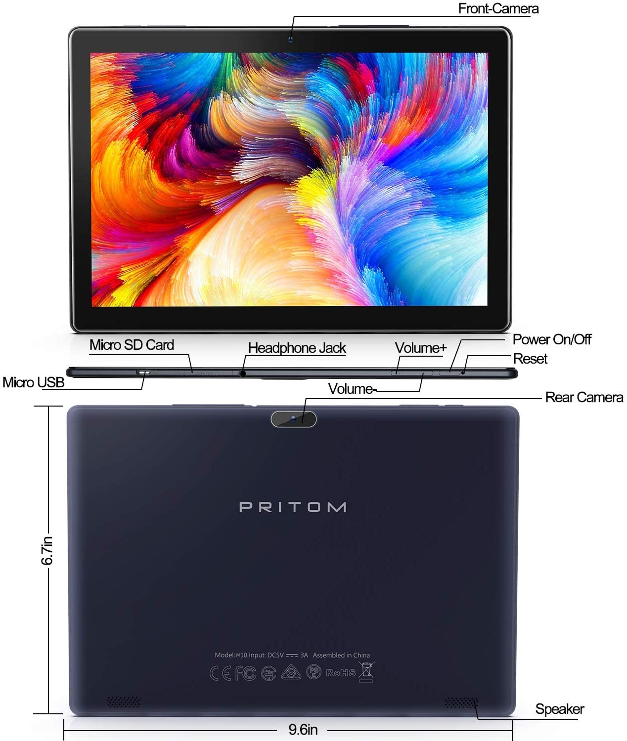 High Performance Android Table -Pritom Tronpad tablet comes with the latest Android 10.0 , The powerful and energy-saving 32 bit Quad-core processor 1. 5GHz, 2GB RAM,enables quicker app launch, smoother videos and better overall performance. In addition, it includes a micro SD card slot (can be added a 128 GB SD card Max, NOT included), no more worrying about storage space, making it easy to store videos etc.