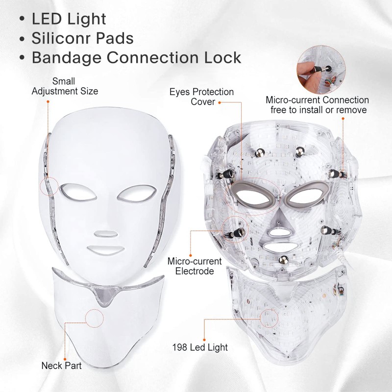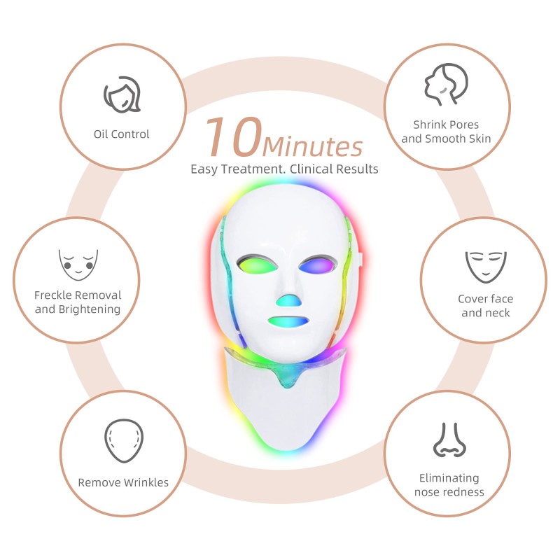 Led Face Mask Light Therapy - 7 Color Photon Blue & Red Light Maintenance Skin Rejuvenation Facial Skin Care Mask, Home Skin Care Mask for Face and Neck
